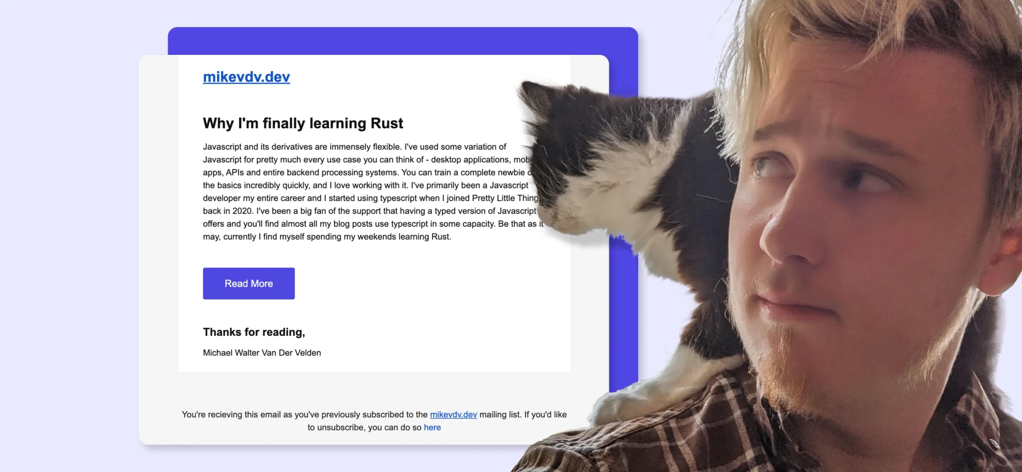 That’s why we were delighted to find Michael Van Der Velden’s blog, mikevdv.dev. The Pretty Little Thing developer has over 8 years of experience in full-stack software development. After missing in-person talks and meet-ups with other developers during the pandemic, he set out to recreate the community online through his blog. Now he’s aiming to spread awareness about technology solutions that make developers' lives easier.