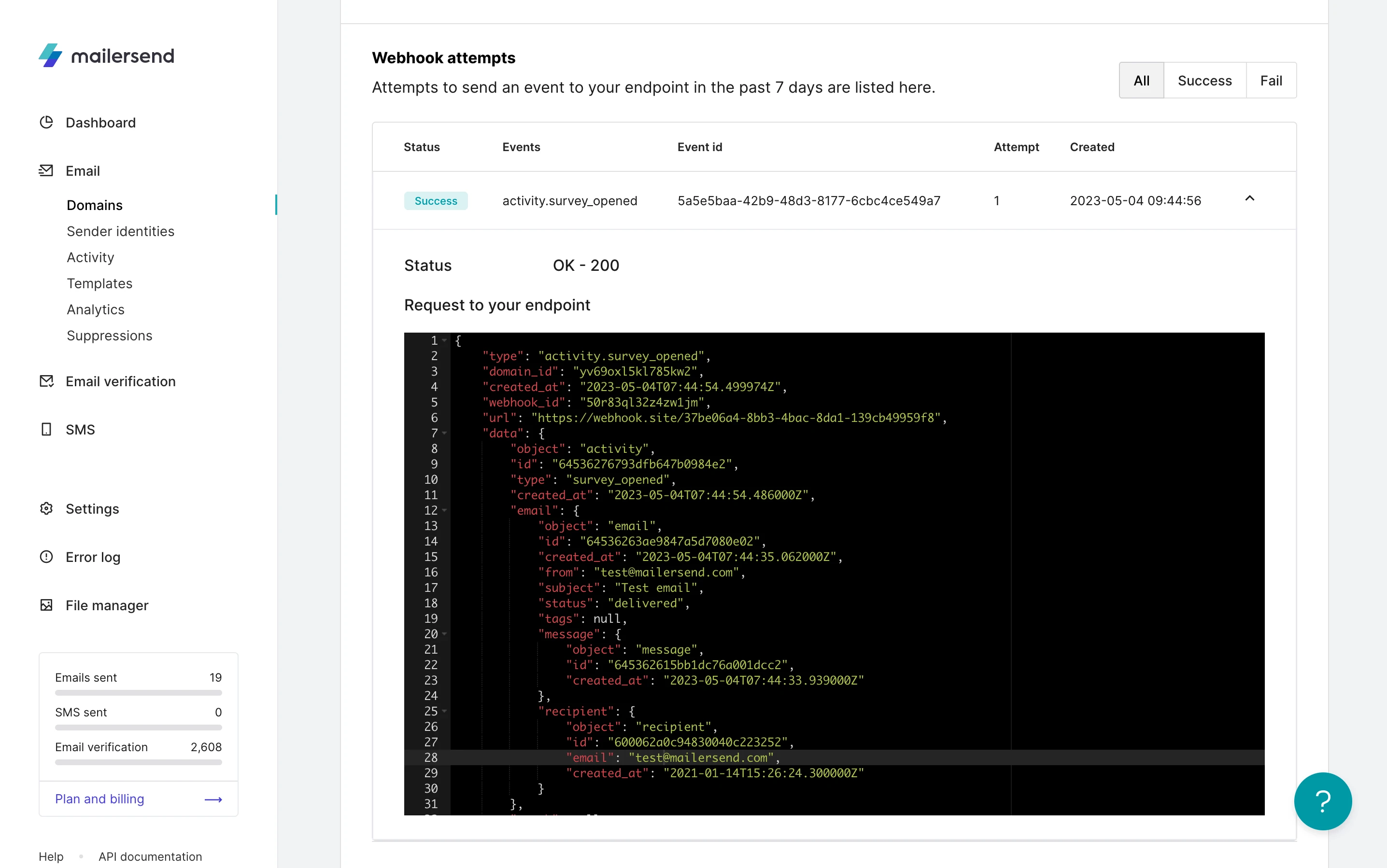 You can test your email by sending a test email and an endpoint URL from webhook.site.