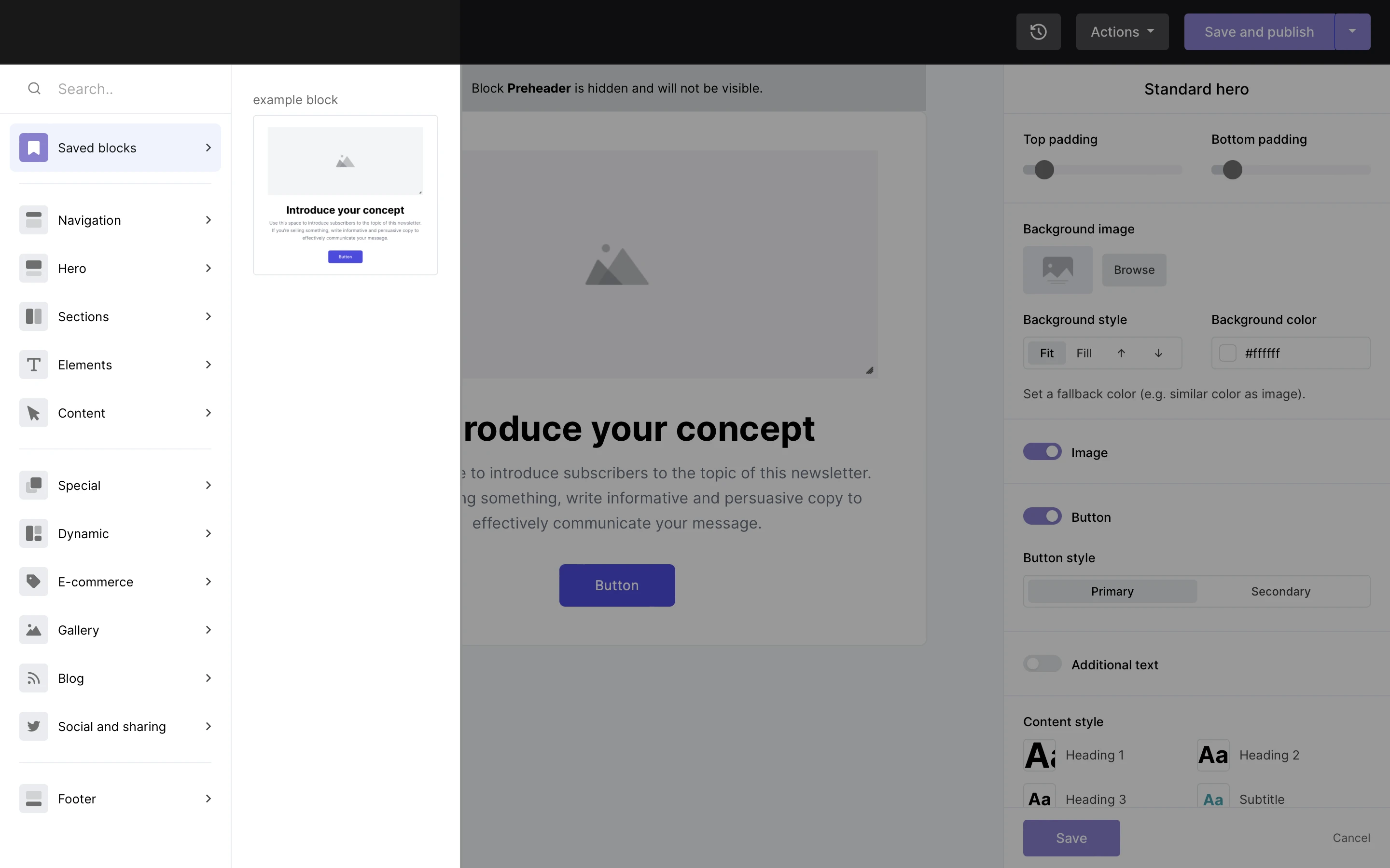 You can now save your custom block templates directly in your editor. This is great for cutting down newsletter build time and maintaining consistent branding.