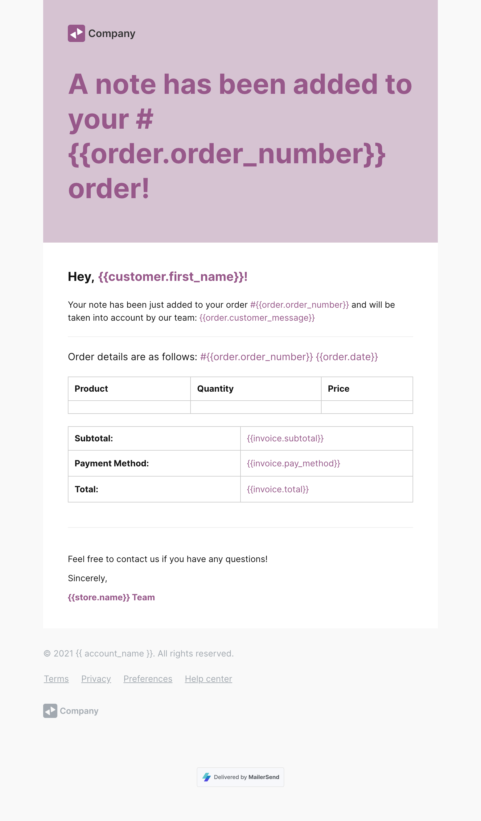 Keep your customers informed every step of the way with VhtLtd's WooCommerce customer note email template. This unique template allows you to easily customize it to match your brand using our intuitive drag & drop builder. Don't miss out on the opportunity to provide a seamless and professional communication experience for your customers.
