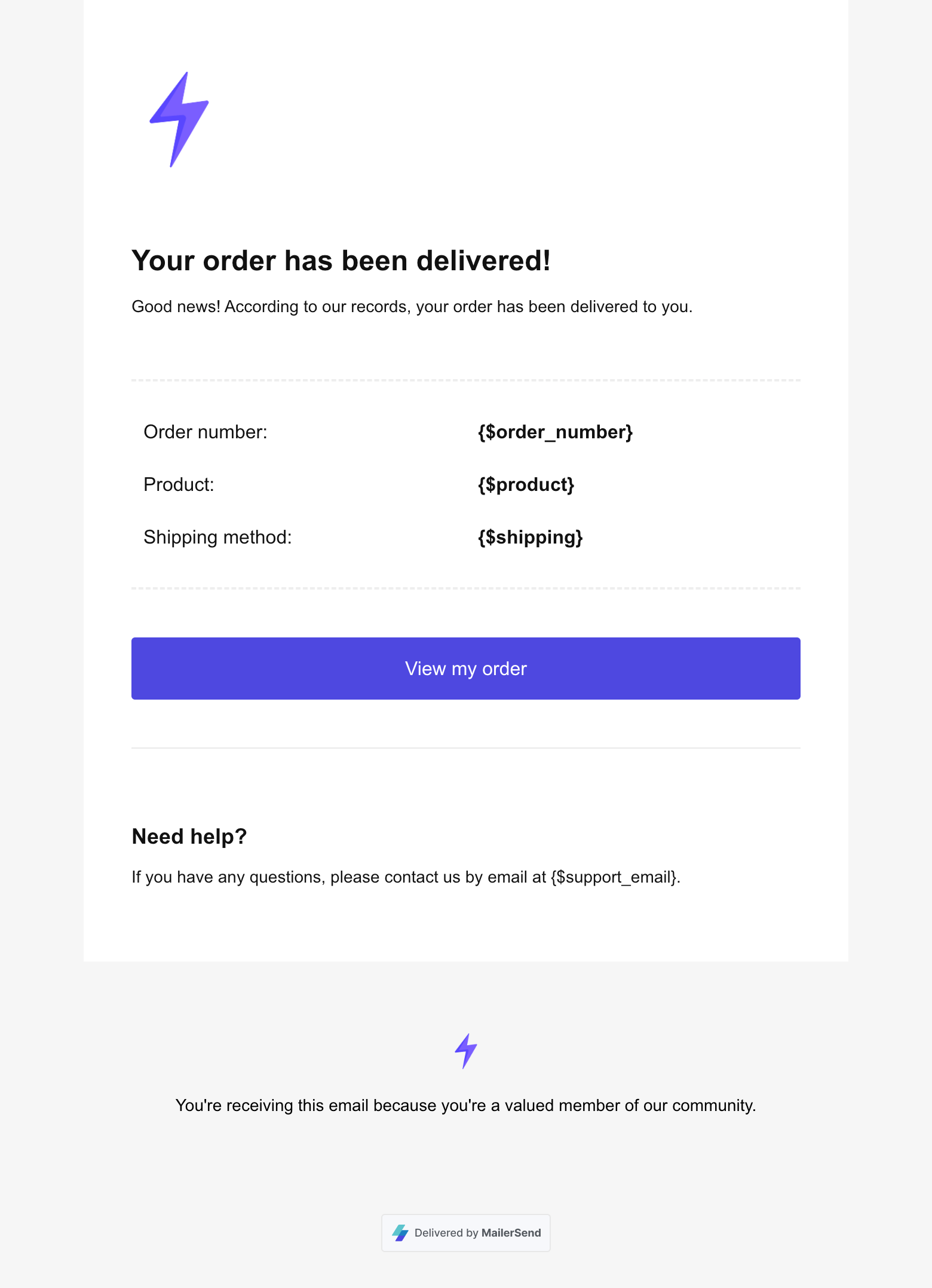 With VhtLtd's delivery confirmation email template, you can effortlessly keep your customers in the loop about the progress of their orders. This template allows you to personalize the design according to your brand's aesthetics using our intuitive visual editor. Stay connected with your customers and provide them with a unique and engaging experience as they eagerly await their deliveries.