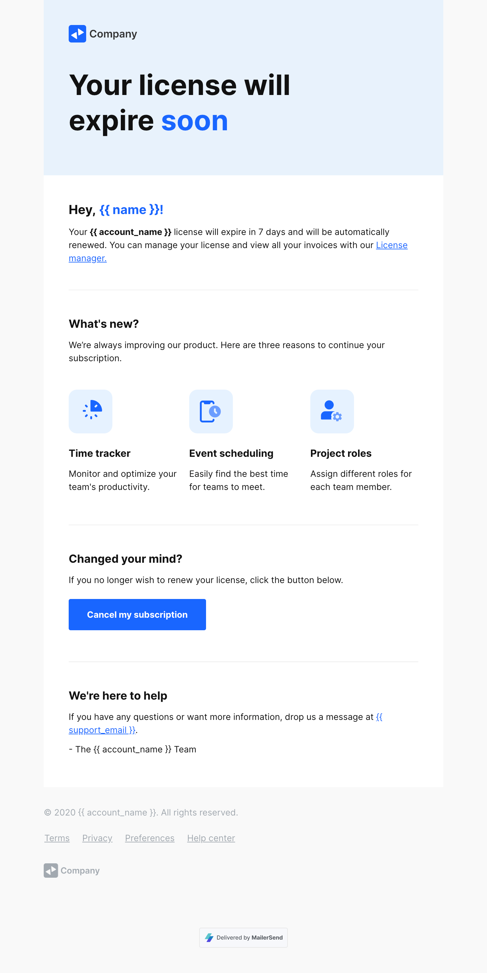 License expiration email template