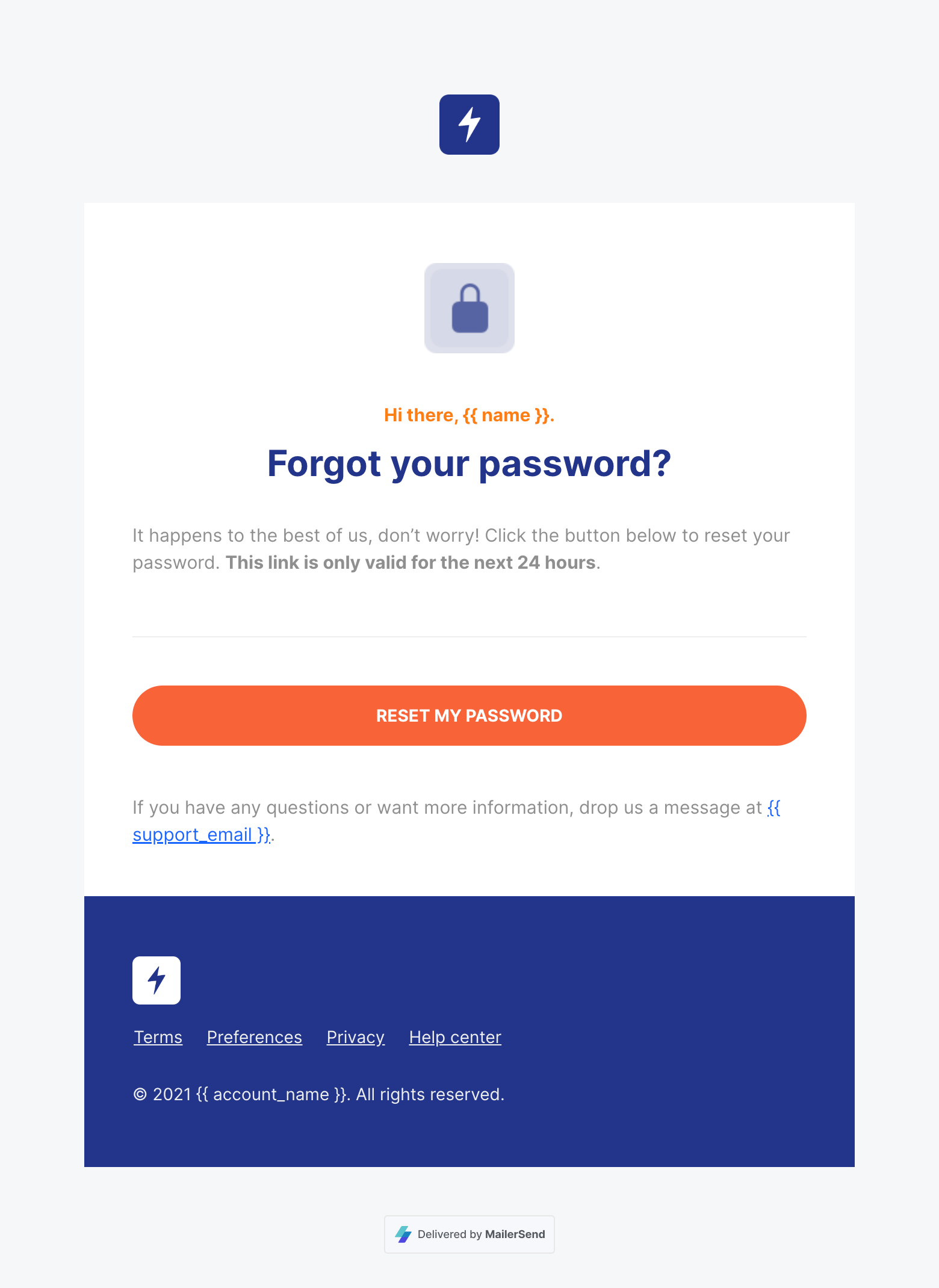 Get VhtLtd's ready-to-use password reset email template to send emails that safely fulfill customer password reset requests and build trust. Easily customize the content and design as much or as little as you need to align it with your brand using our visual builder.