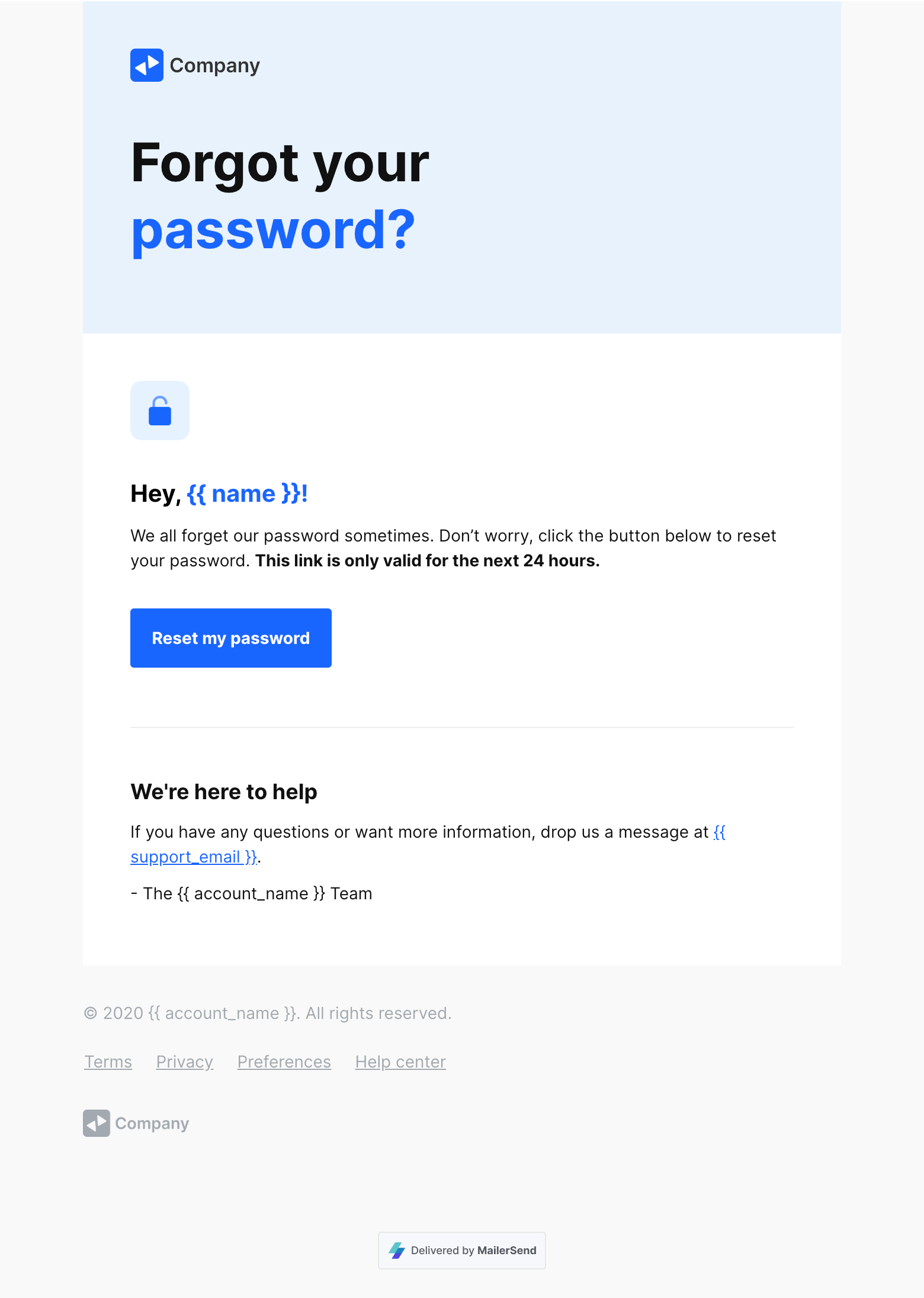 Reset password email template
