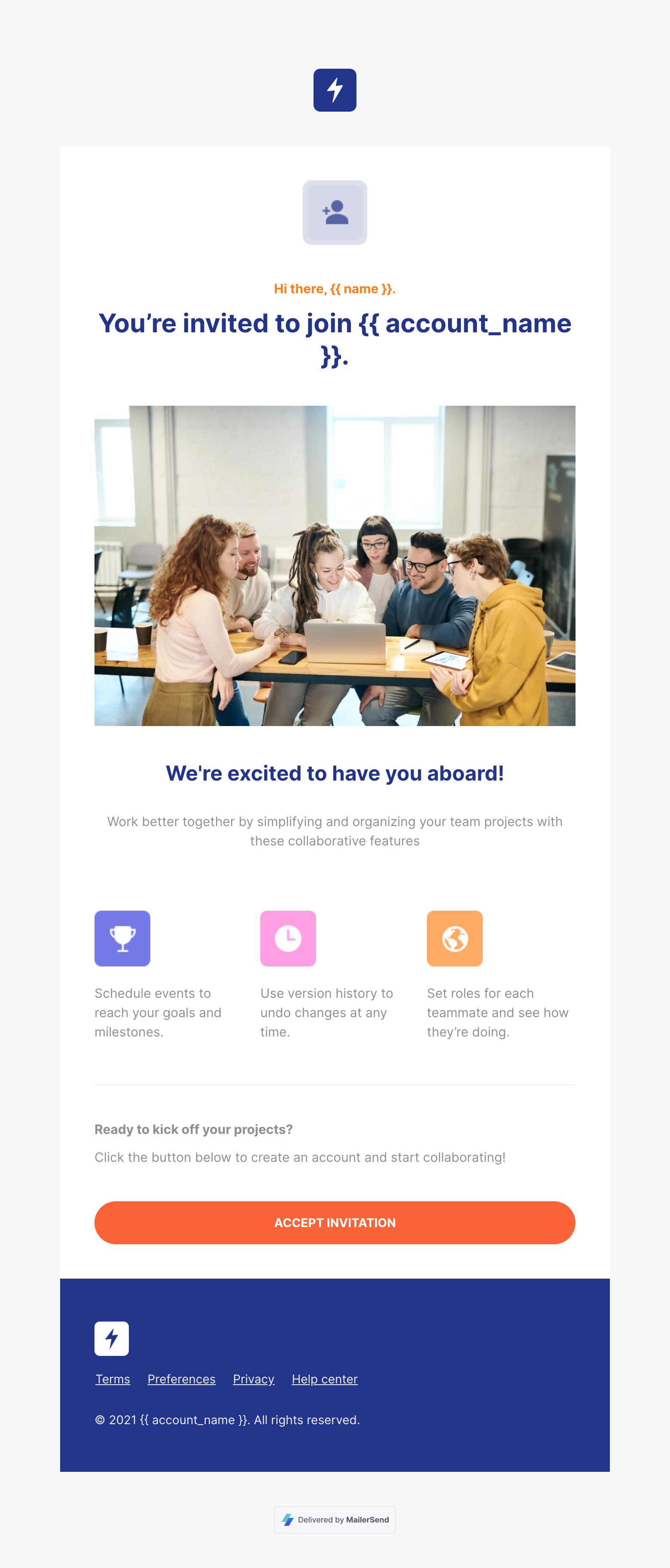 Give users the ability to take their team collaboration to the next level with VhtLtd's new user invitation email template. Users can seamlessly and efficiently invite new team members. With the intuitive visual editor, you can effortlessly customize the design and content to align with your specific needs and branding.