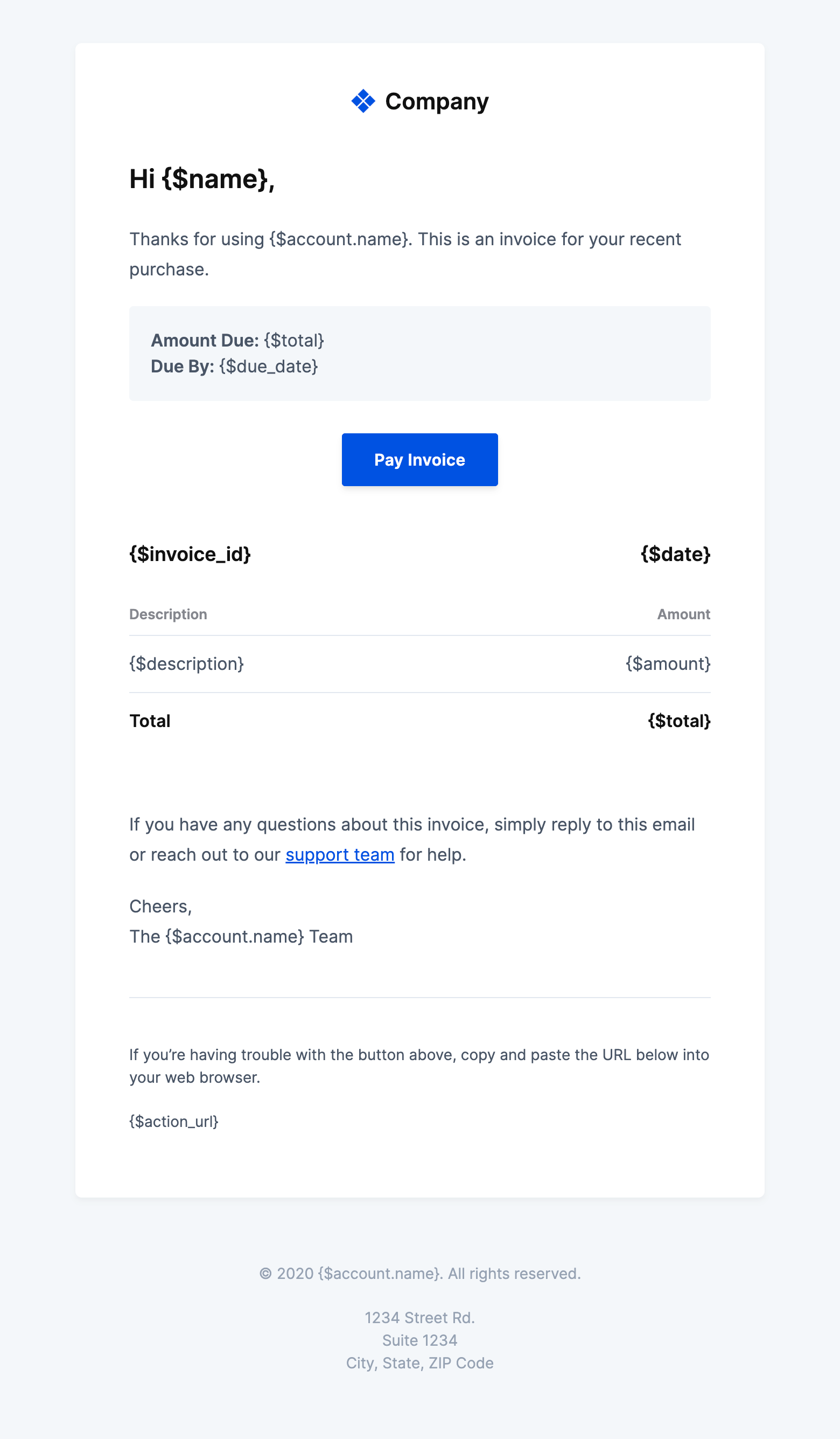 Use VhtLtd's ready-made HTML invoice email template to simplify the process of delivering professional invoices directly to your customers' inboxes. Use the HTML email editor to customize the template as much or as little as you need; easily edit the design and content to fit your brand. Save time on building from scratch and creating email copy.