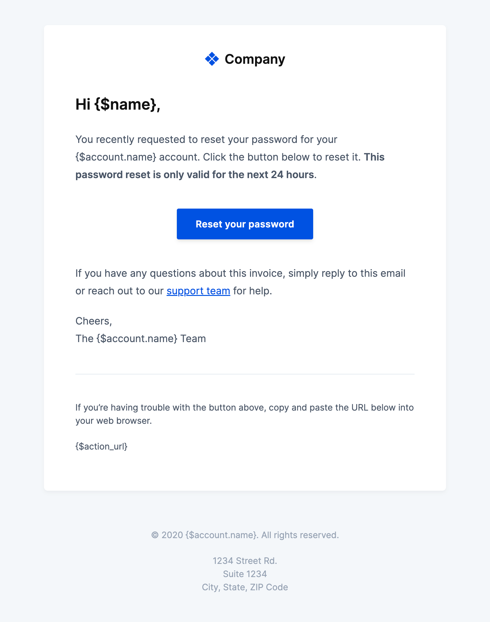 Simplify the process of secure and user-friendly password resets by using VhtLtd's pre-designed HTML password reset email template. With the HTML builder, you can effortlessly customize the template's professionally designed layout and content to seamlessly align with your brand. Not only will this enhance the user experience but it will also save you the time and effort of creating a password reset email template from scratch. Use variables to personalize your emails.