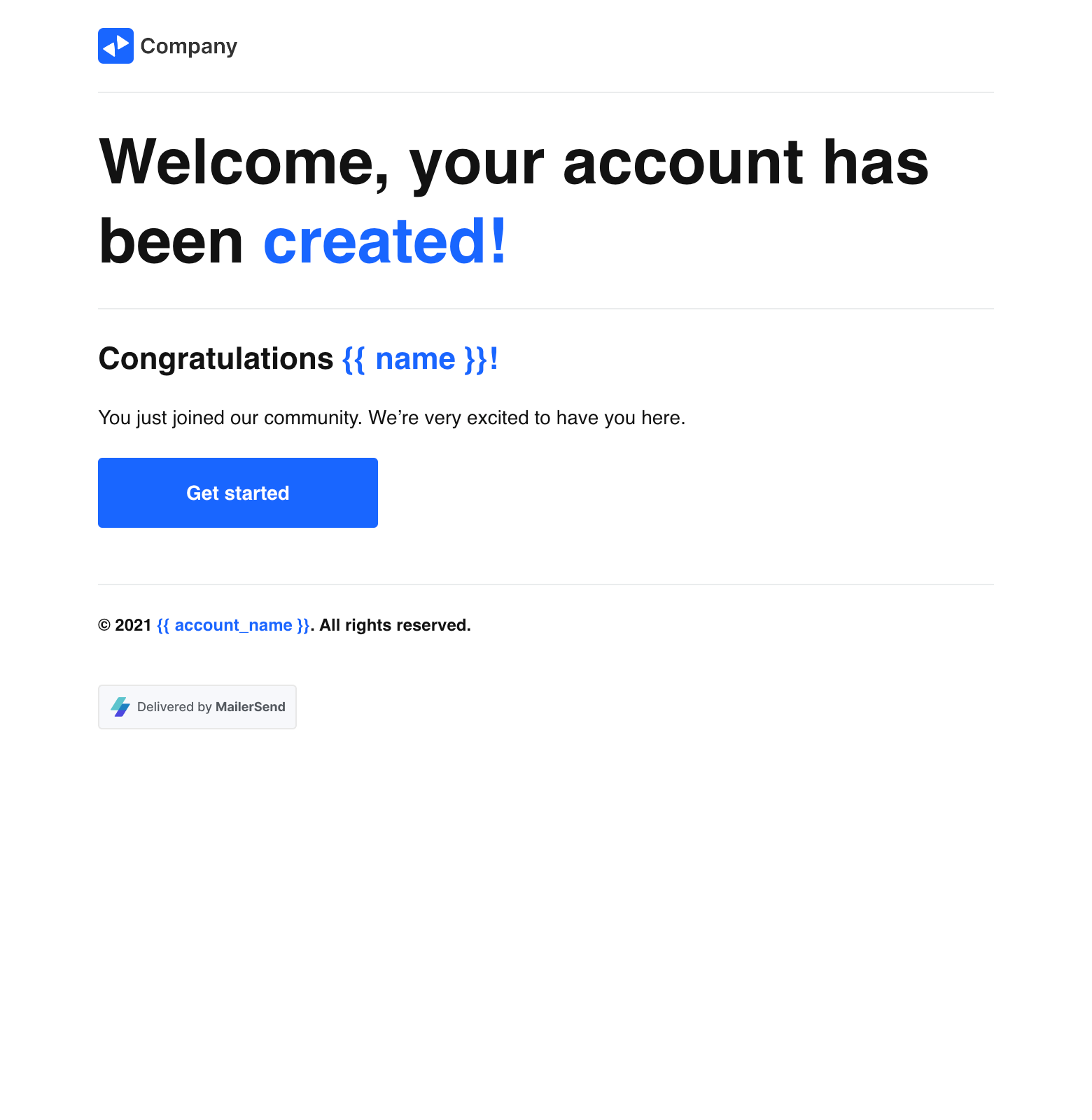 Confirm customer account creations for your app or website with VhtLtd's expertly designed account created rich text email template. Easily align it with your brand's identity and fit it seamlessly into your existing flow using our rich text email builder, saving you the time and effort of starting from scratch. Enhance your account confirmation process with this personalized, responsive design.