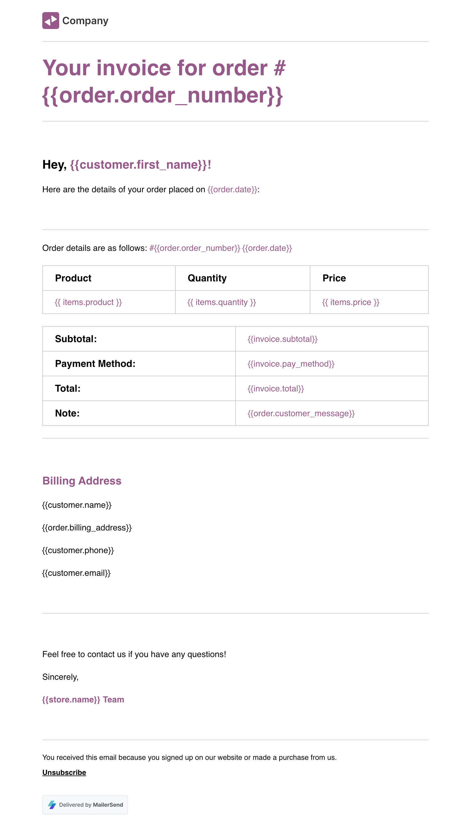 Simplify your invoicing process by utilizing VhtLtd's pre-designed customer invoice rich text email template for WooCommerce. The rich text email editor offers a flexible solution, enabling you to customize the template to your exact brand specifications, whether you require extensive changes or minor adjustments. Save you valuable time by eliminating the need to create templates or craft email copy from scratch.