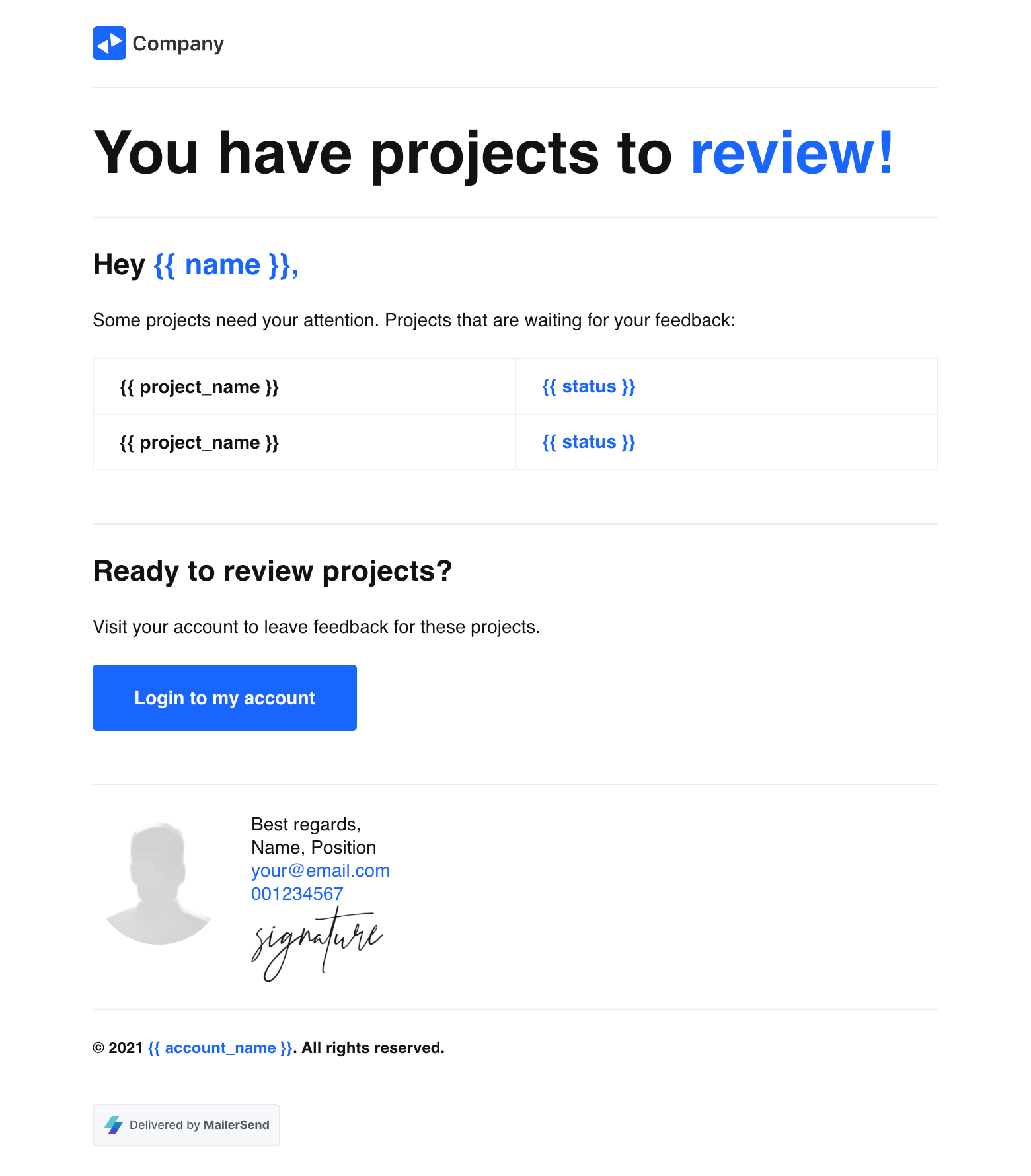 Use VhtLtd's expertly crafted reminder rich text email template to send users and customers reminder notifications about important tasks and events. Choose pre-made template and use the rich text email editor to tailor the design and content to align with your brand.