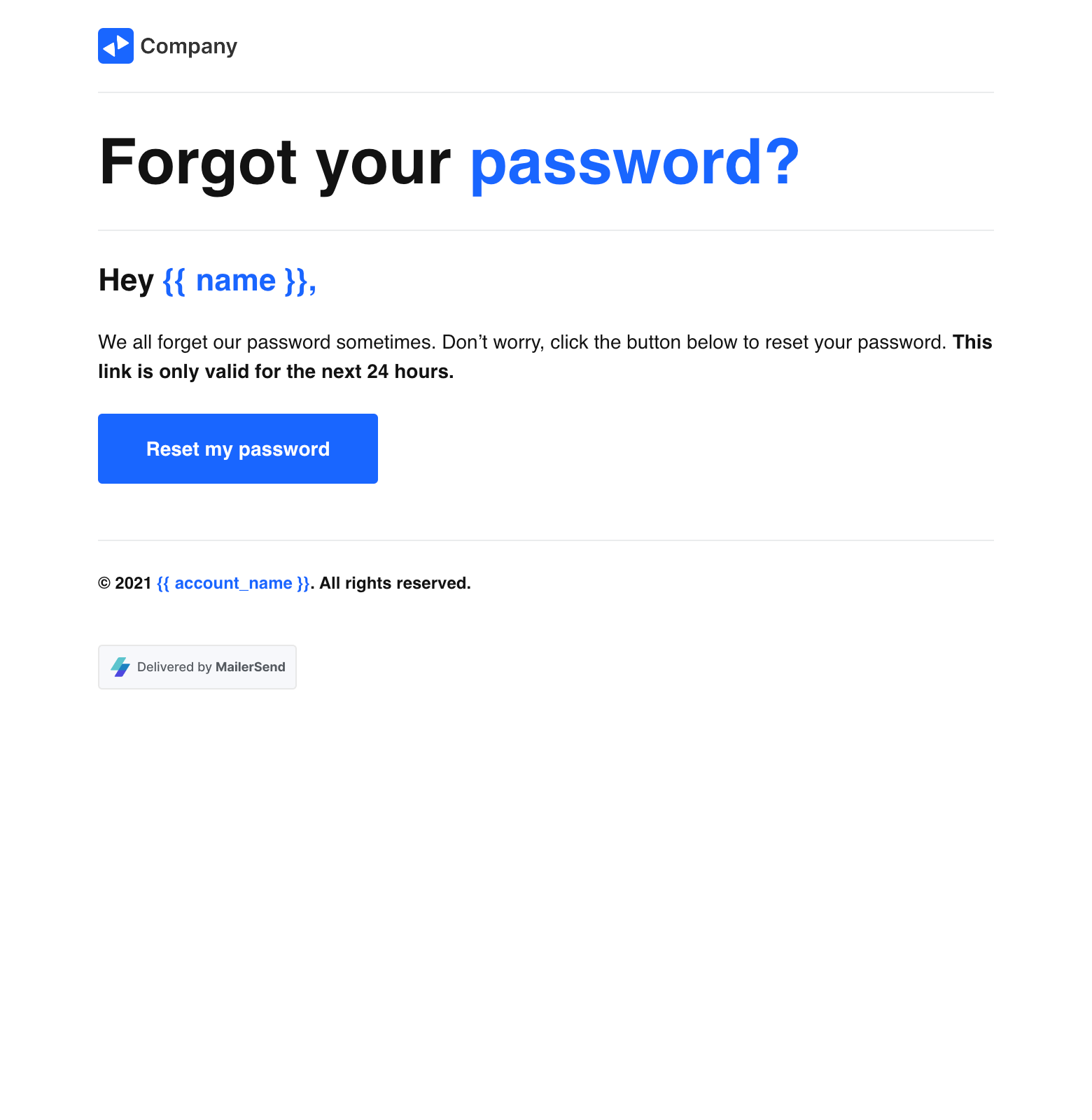 Rich text password reset email template